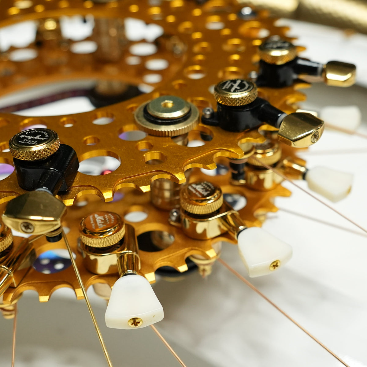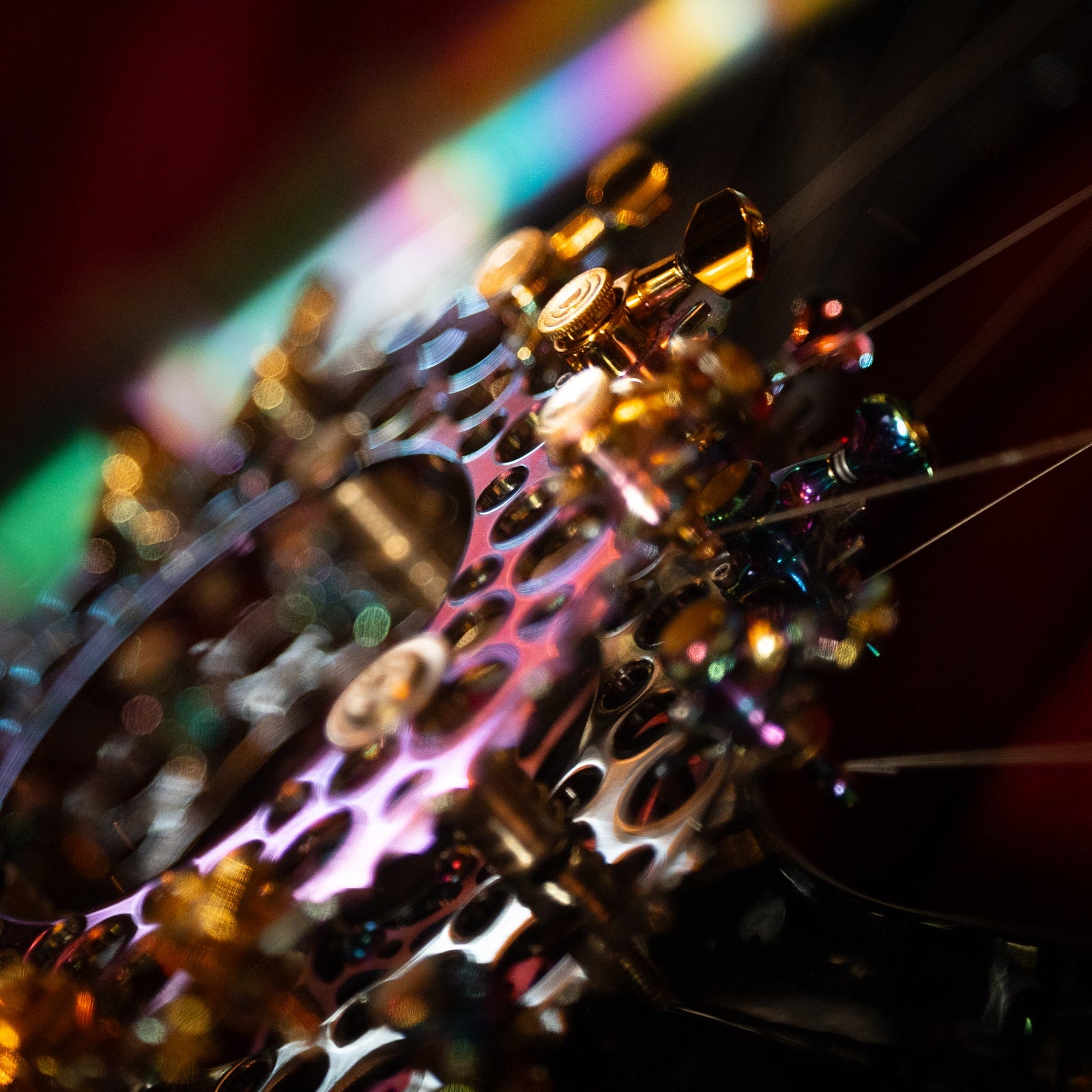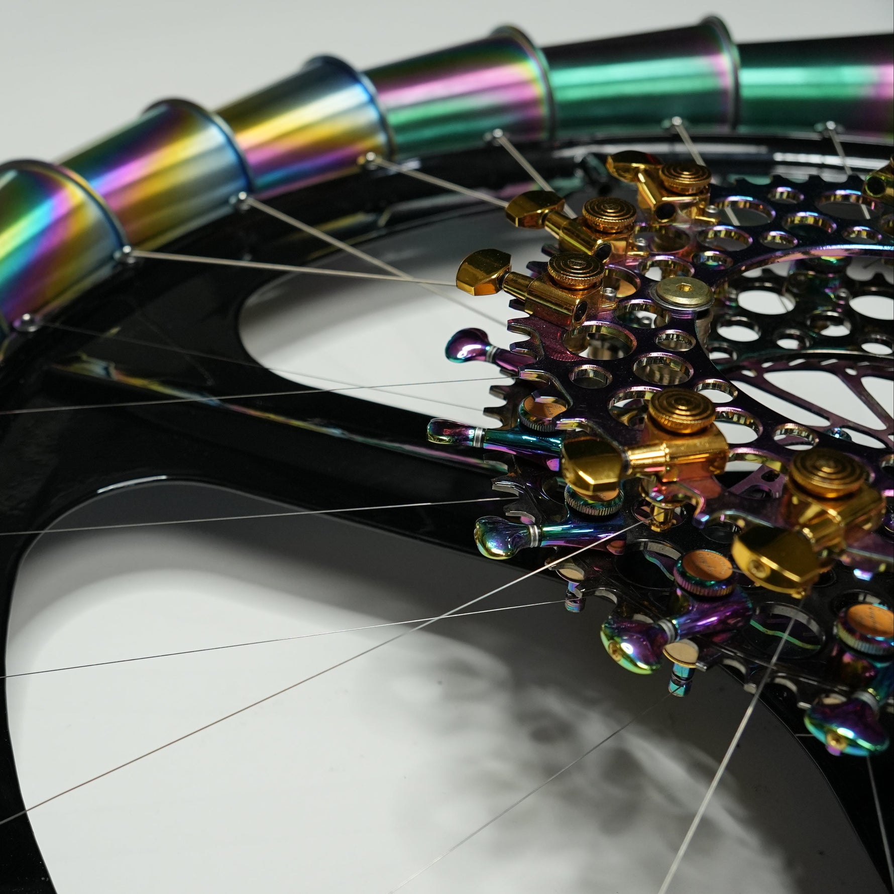 Discover a sound that no one else has. The Lethelium is a handcrafted 24-string chromatic instrument forged from a bicycle wheel & transformed into a rare performance tool.