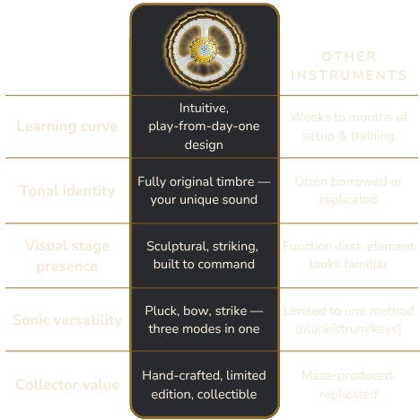 The Lethelium is an acoustic instrument by default, but it can easily be mic’d or fitted with a pickup for live or studio use. Its rich resonance shines in both analog and amplified settings.